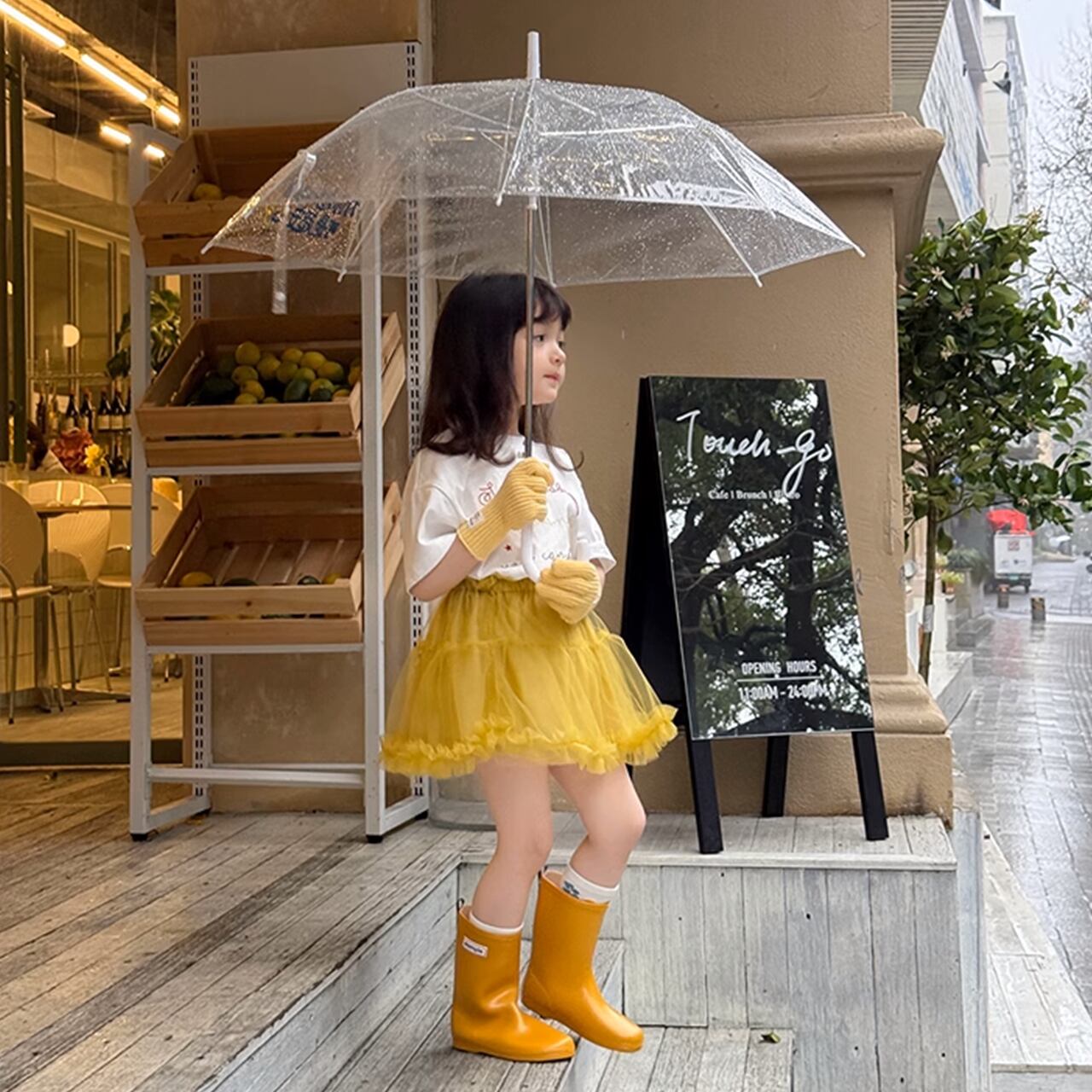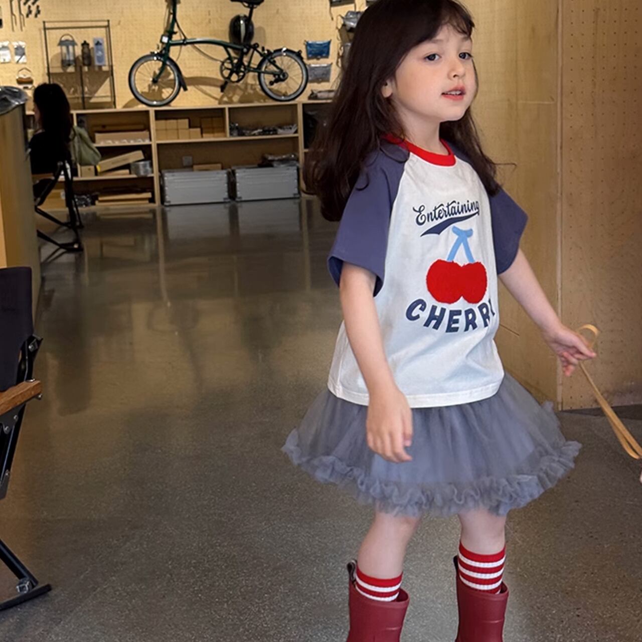 *モデルの身長は113cm,19kg, 着用サイズは110cmです