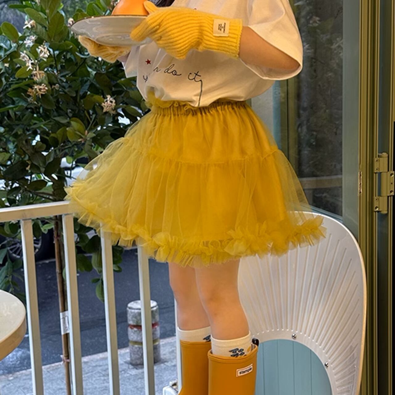 チュールのフリルが可愛いスカート