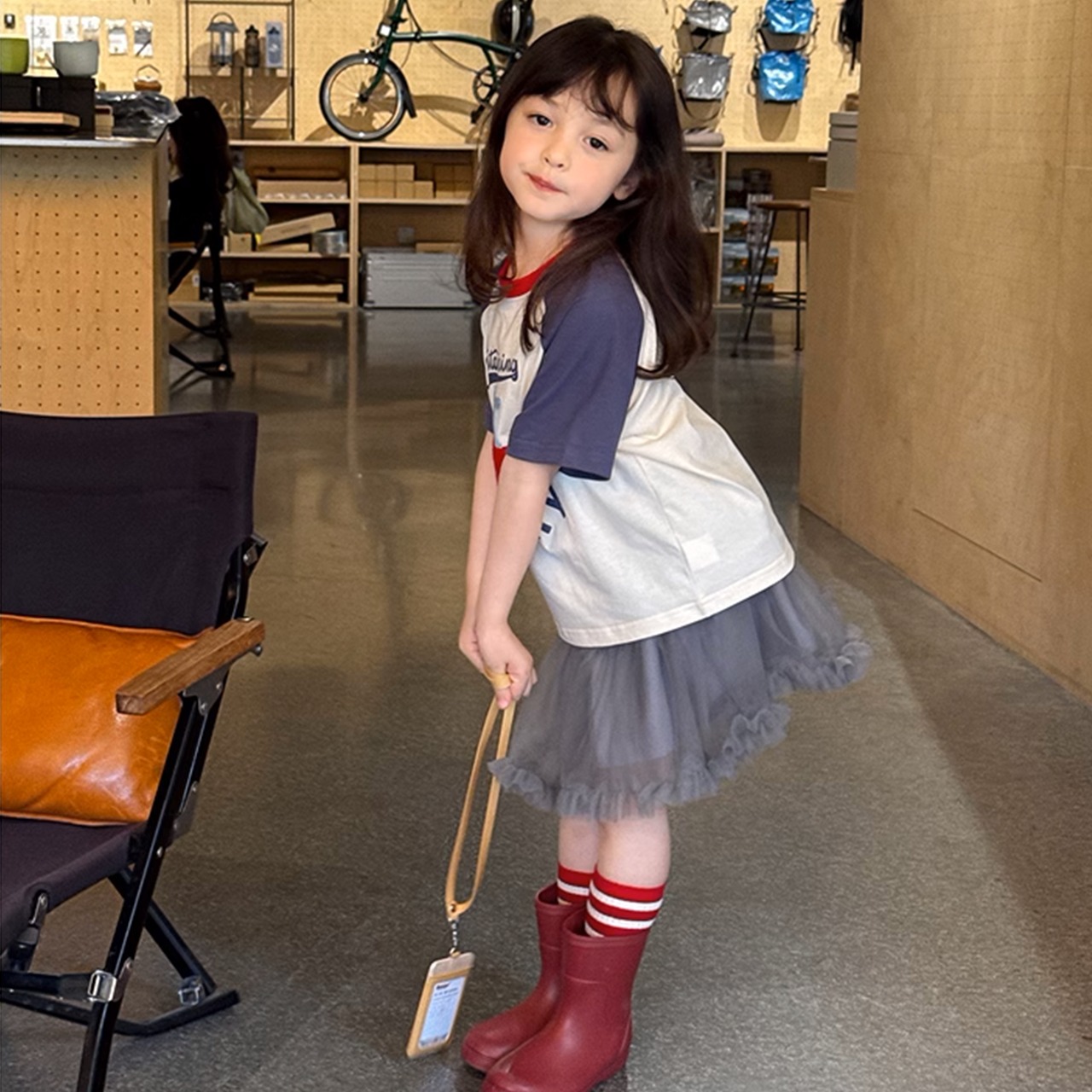 シンプルなTシャツと合わせたり、POPな柄のTシャツと合わせても♡