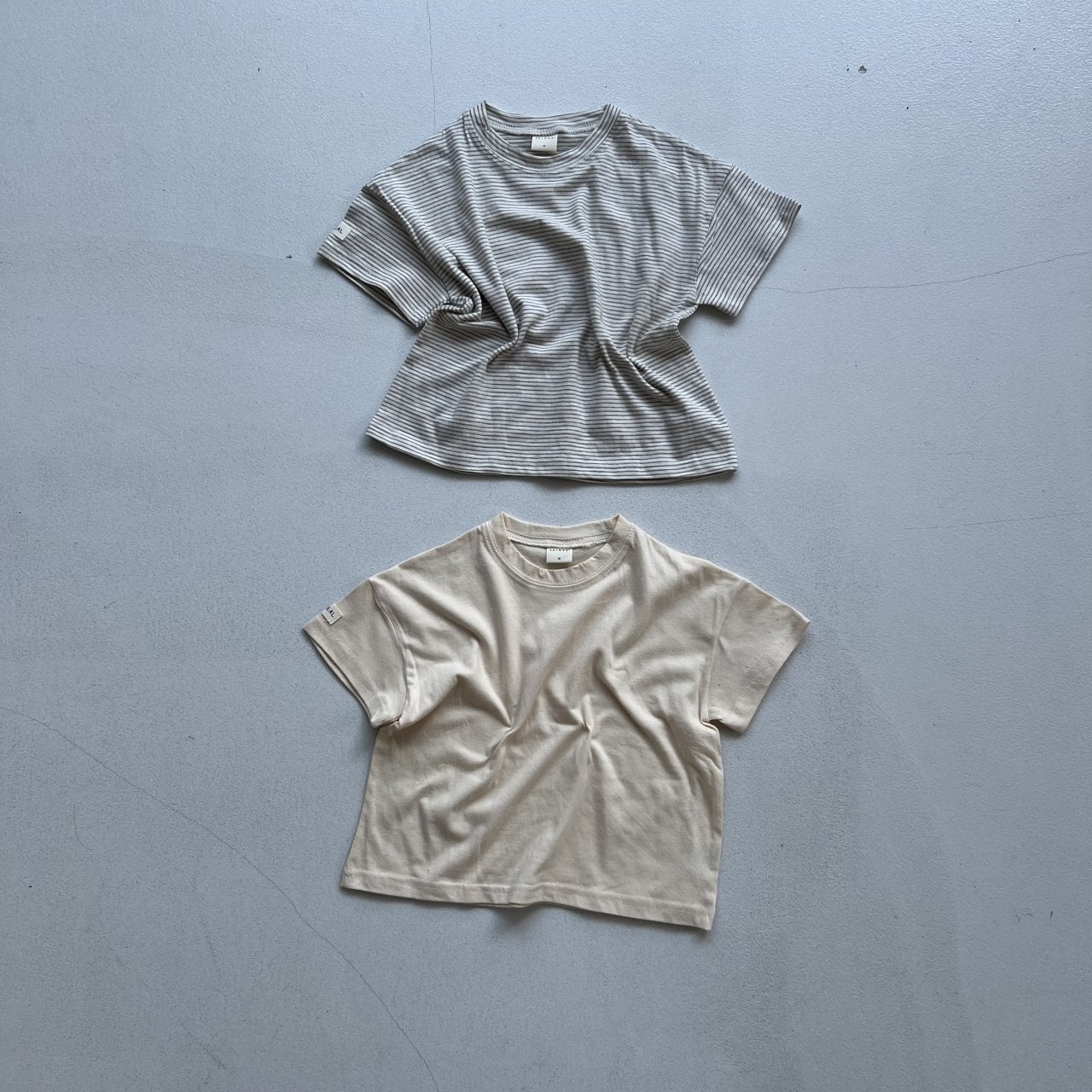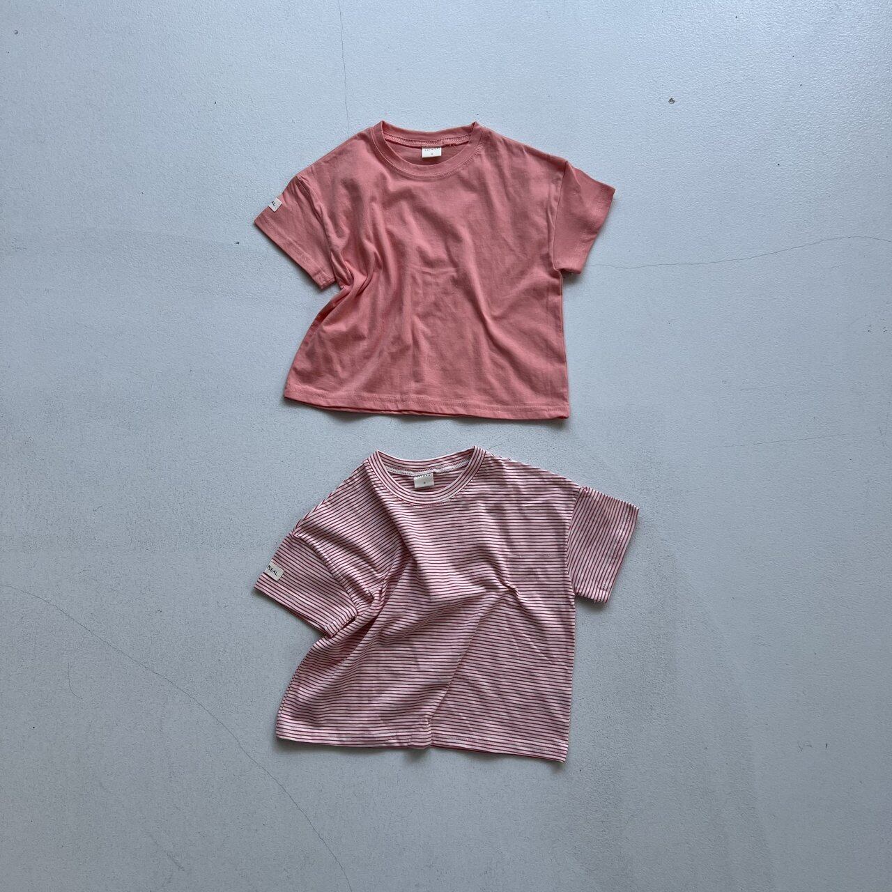 シンプルなボーダーと無地のTシャツ2枚セット