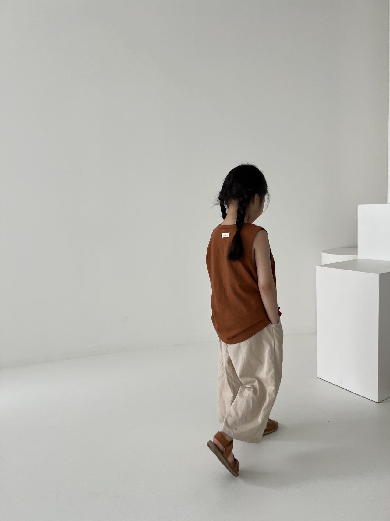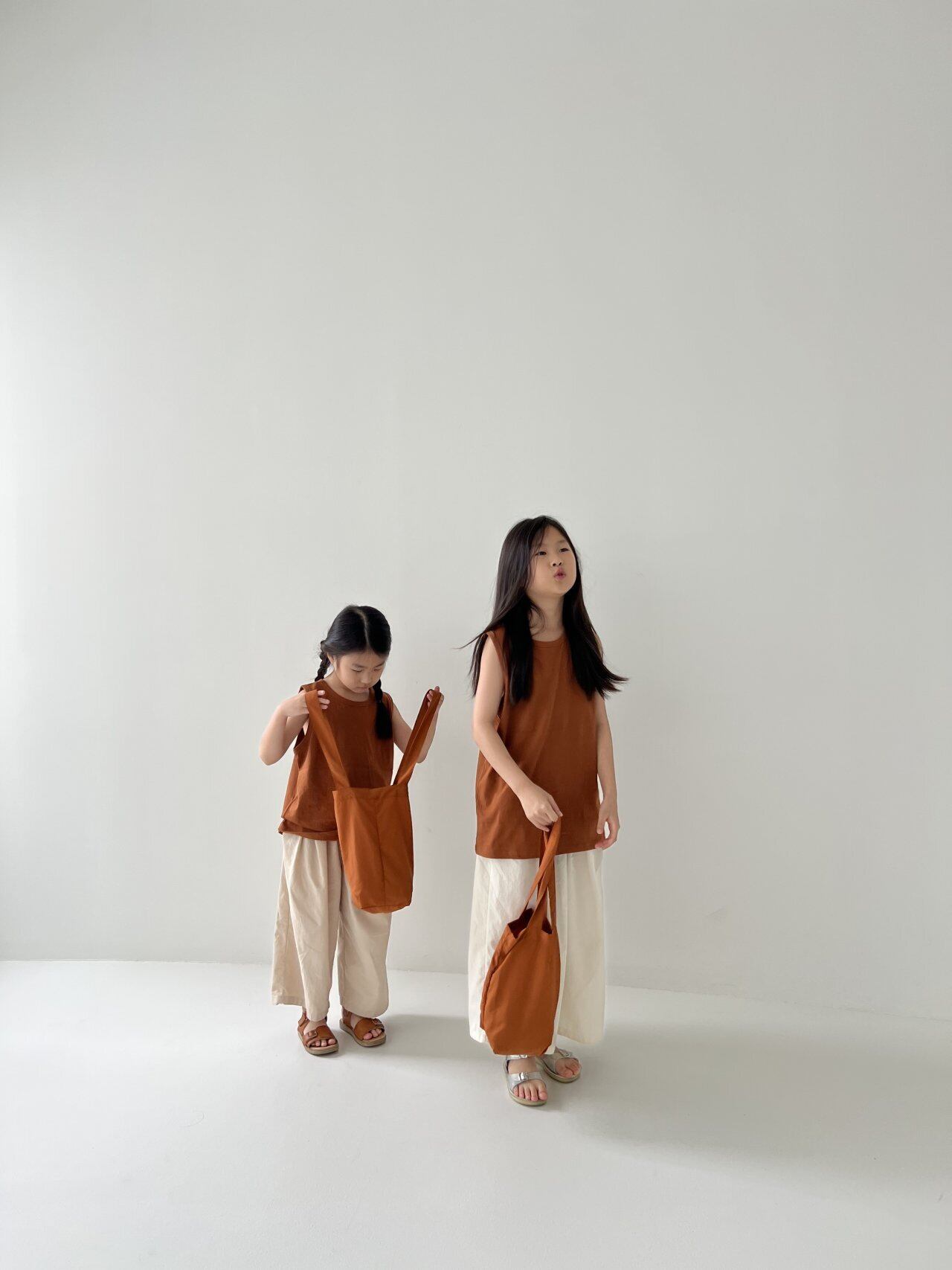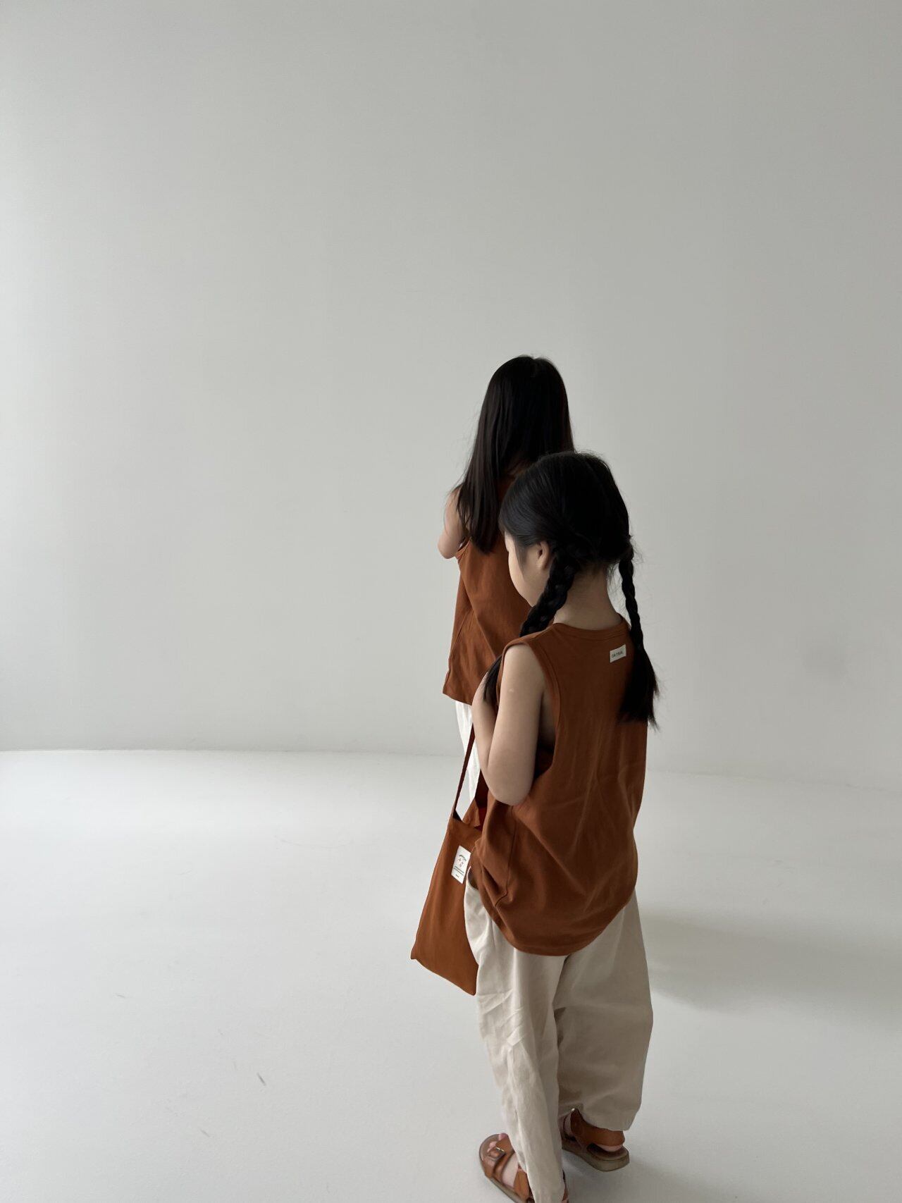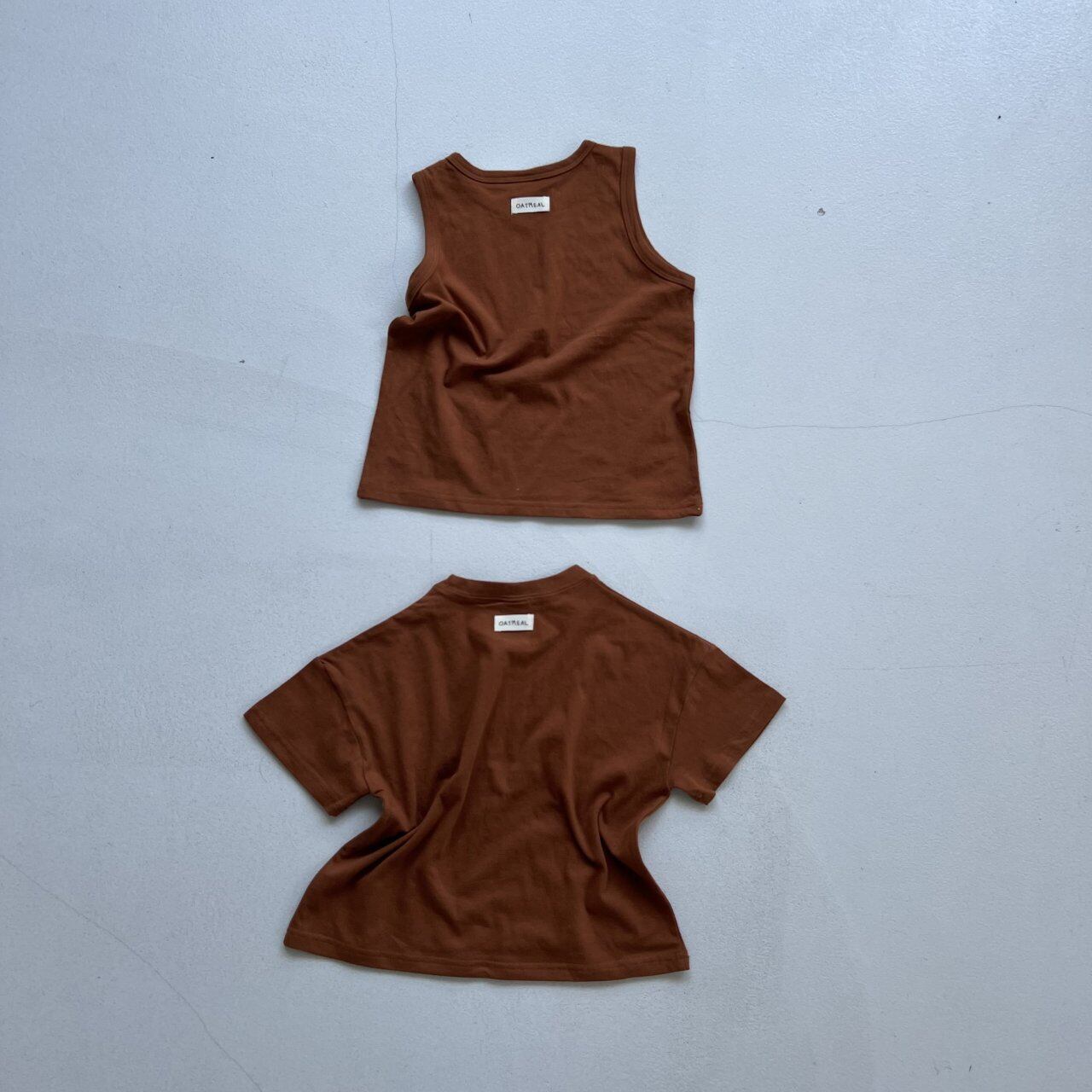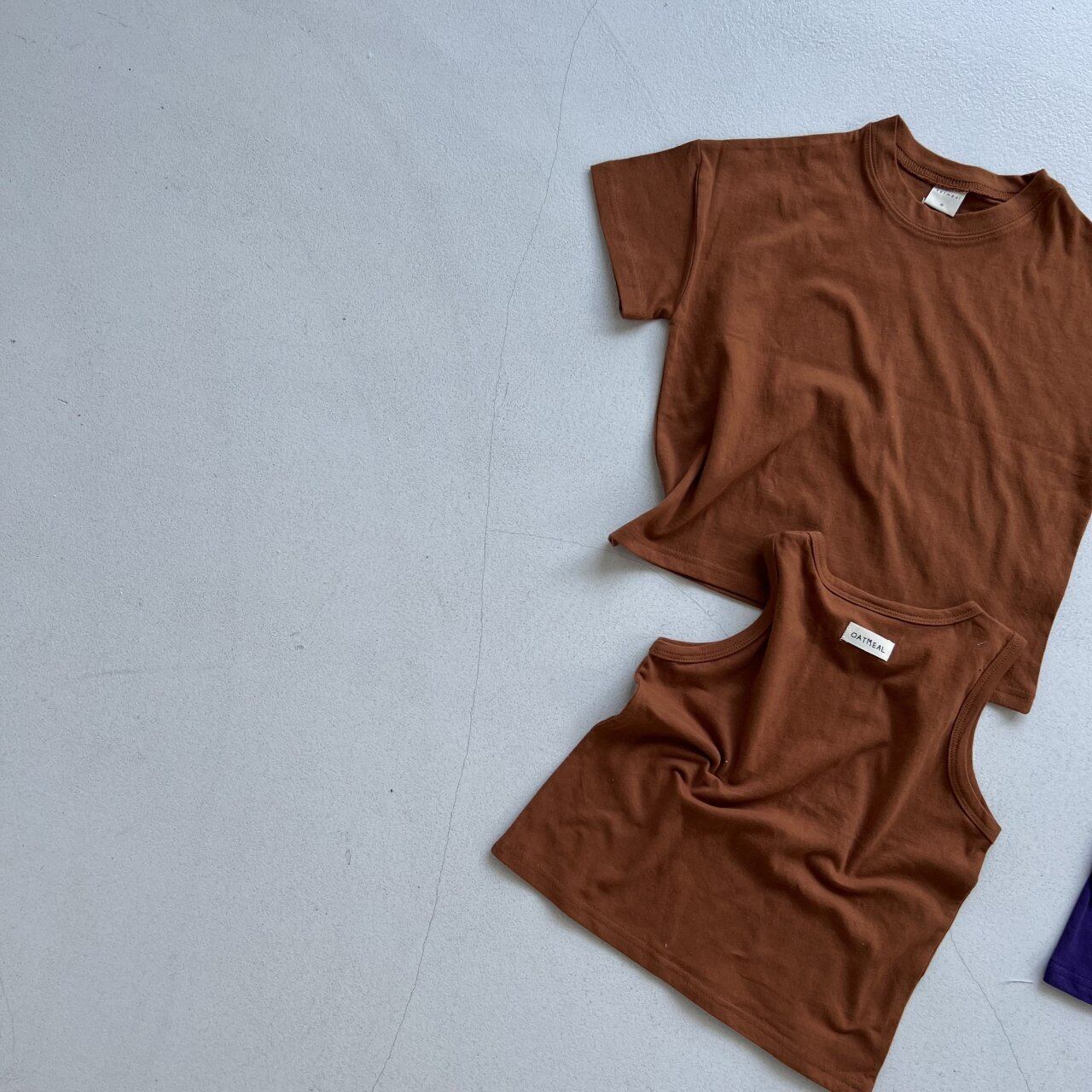 シンプルな無地のTシャツとノースリーブの2枚セット