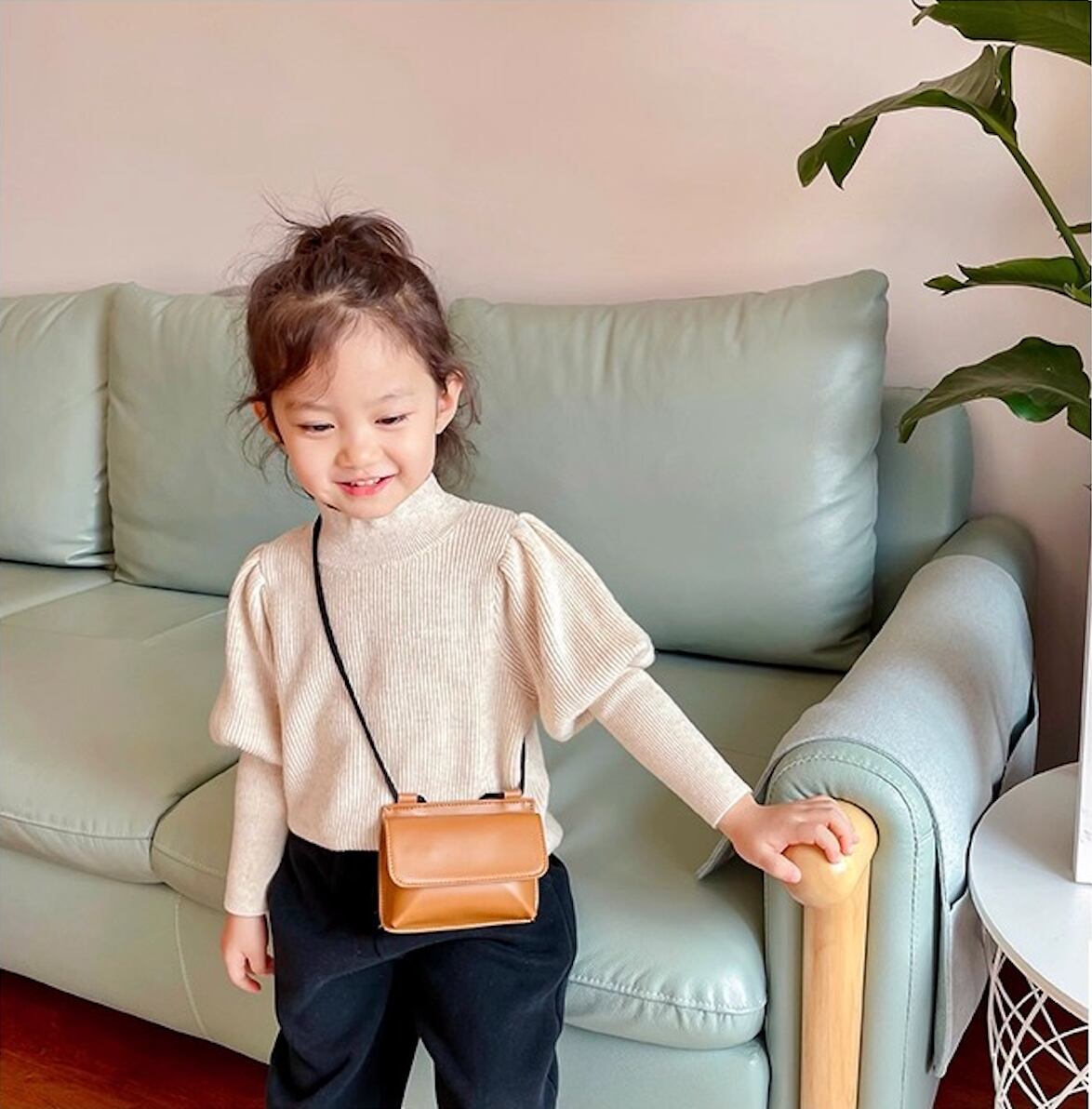 フェイクレザーが大人っぽいポシェットです