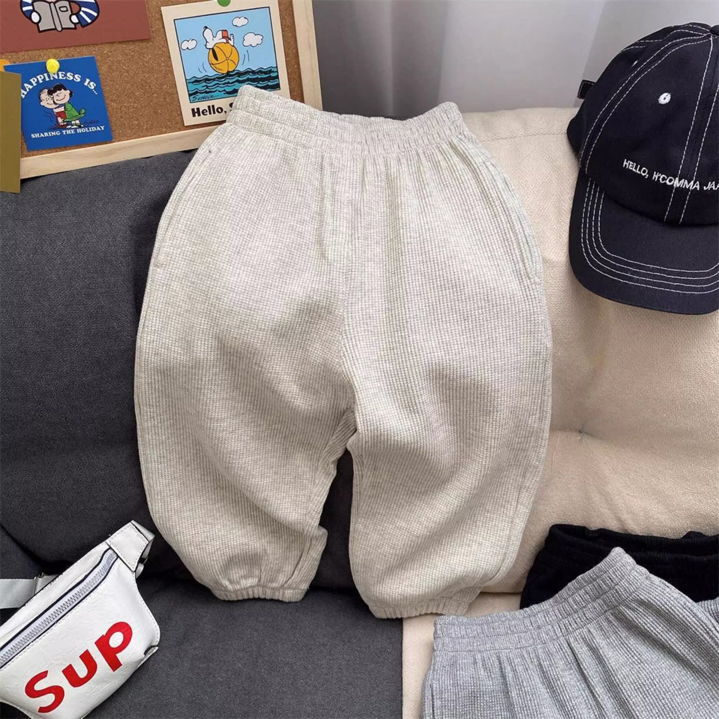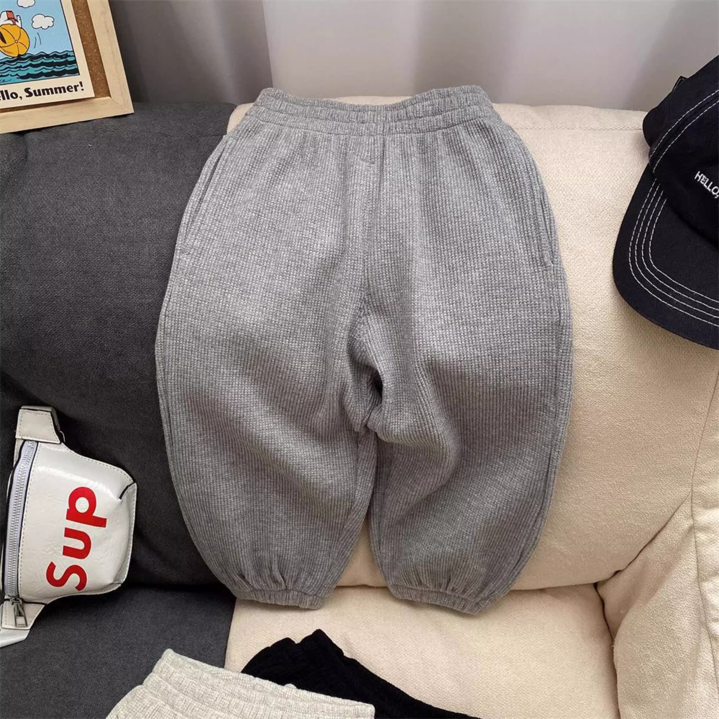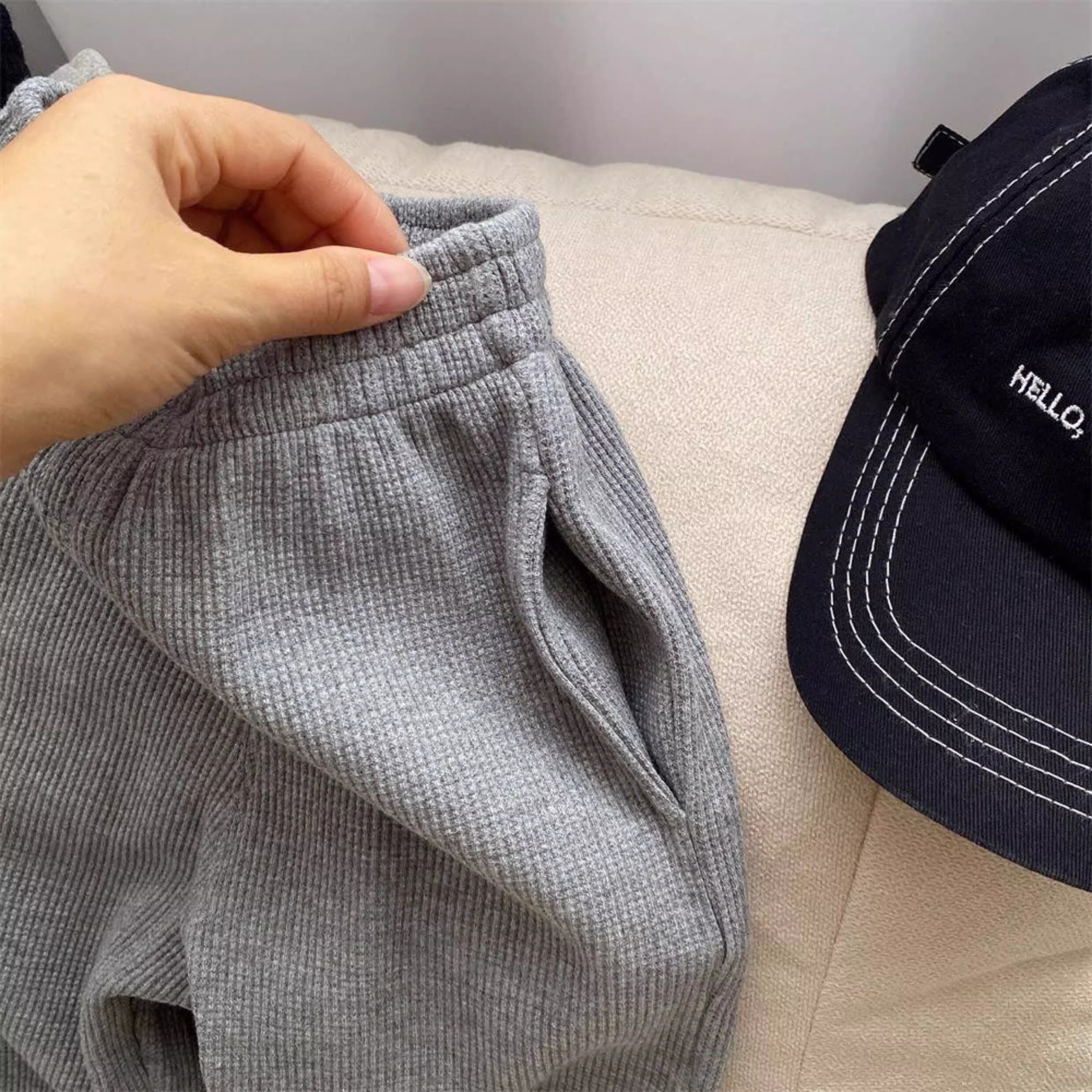 ワッフル地のリラックスパンツ