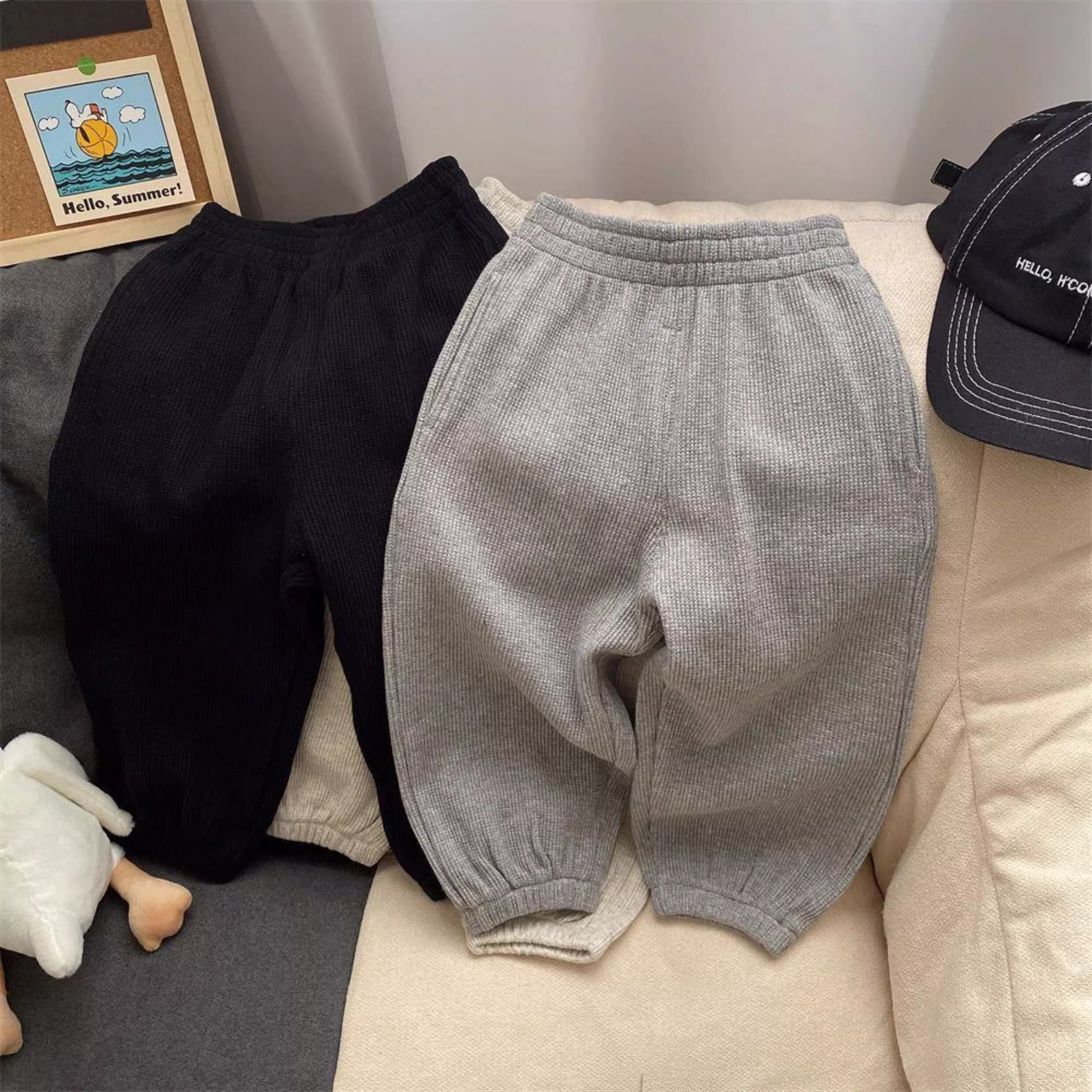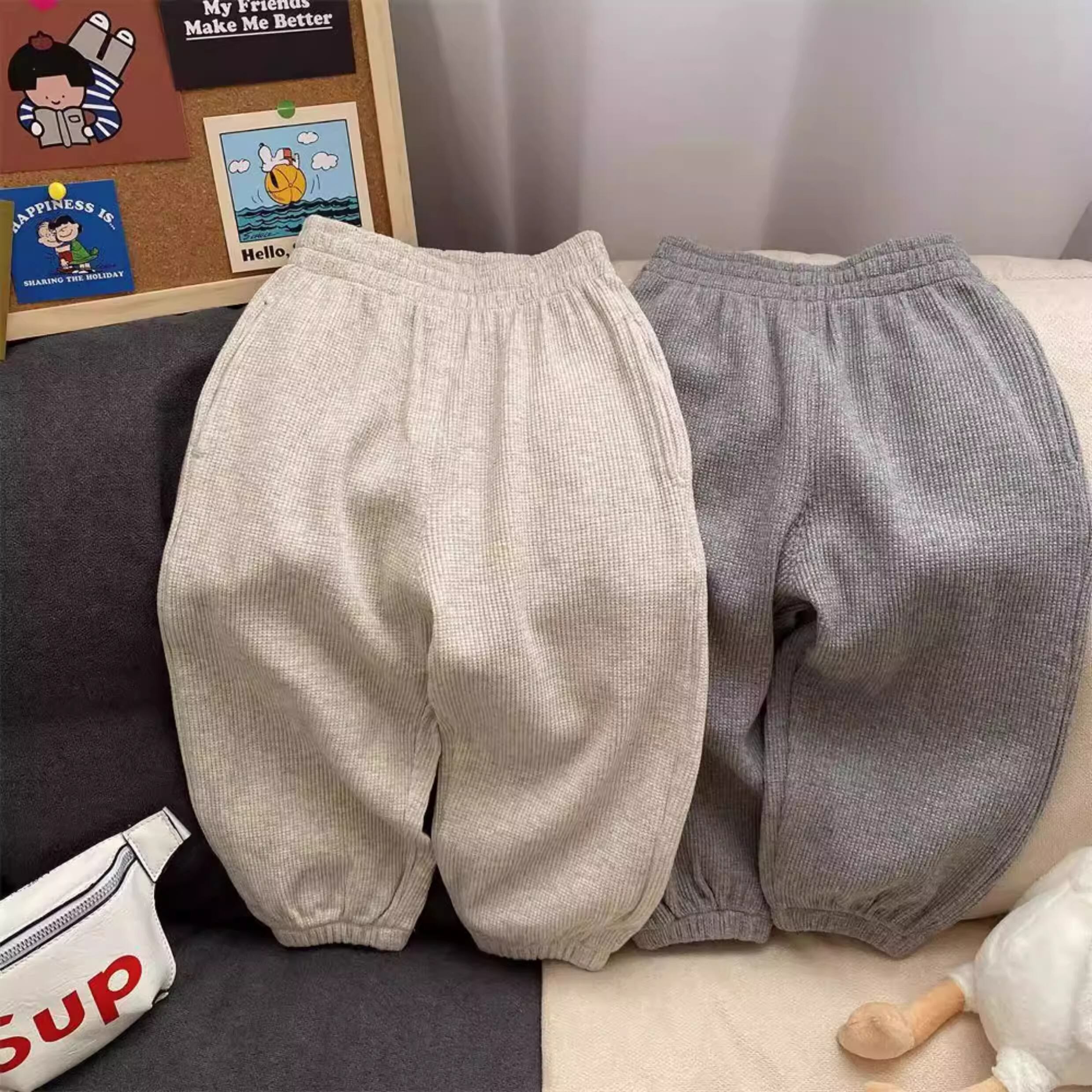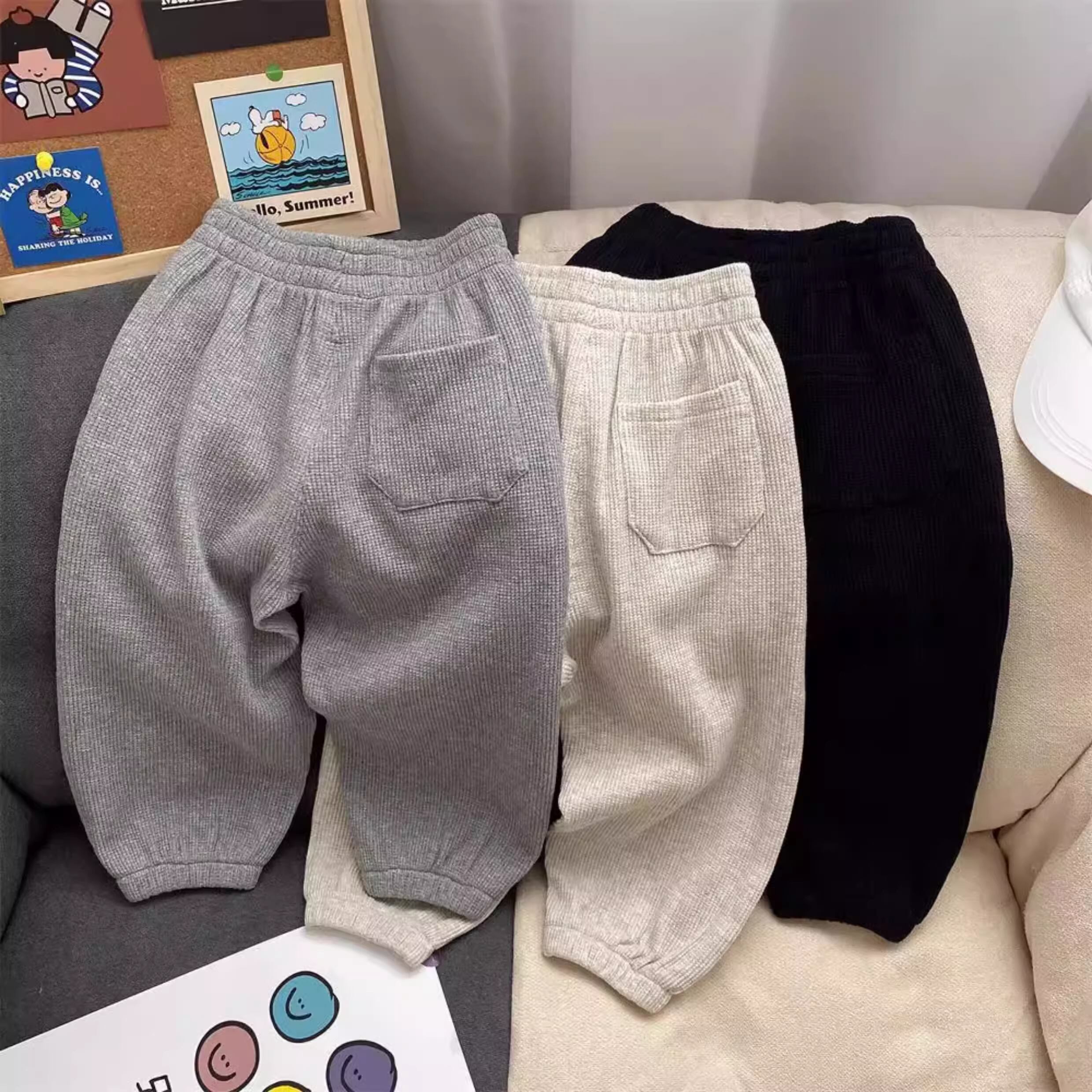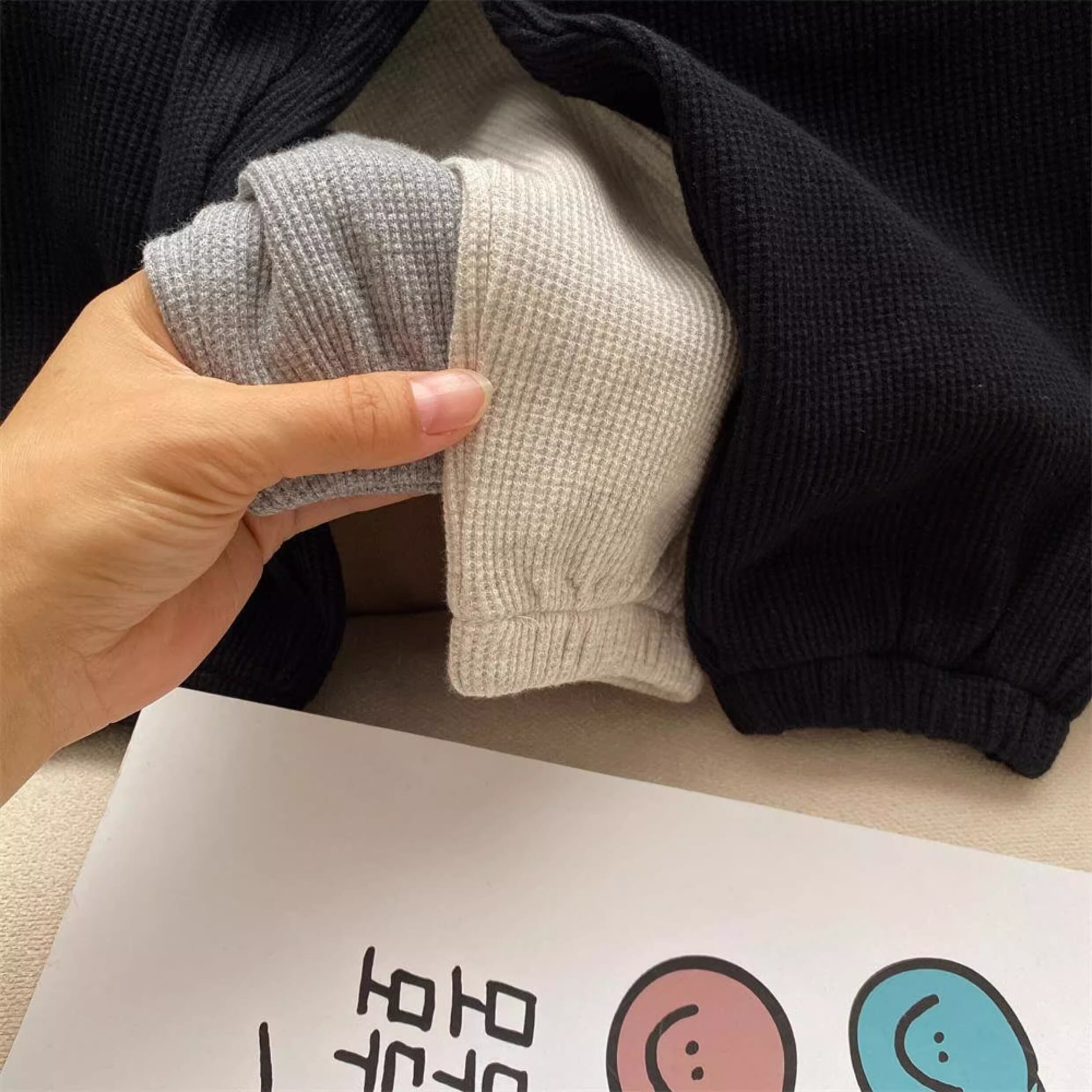 ワッフル地のリラックスパンツ
