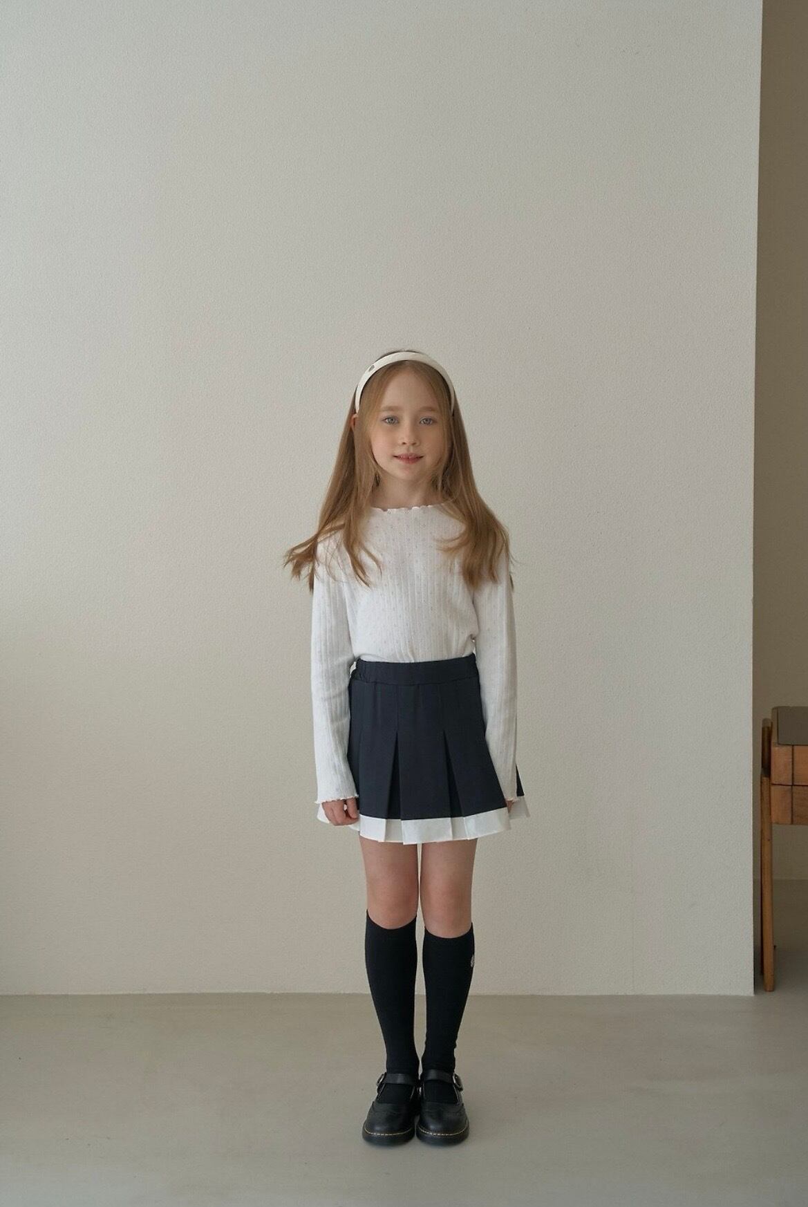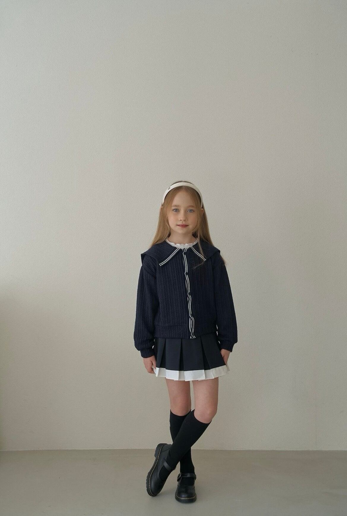 *モデル(ブロンドヘア)の身長は124cm,23kg, 着用サイズは11です