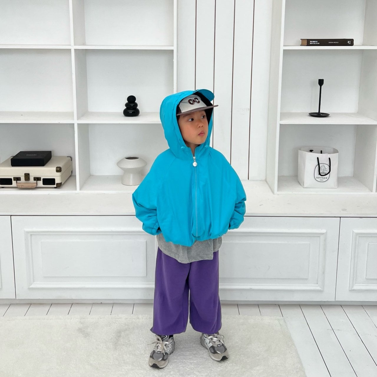 ヴィヴィッドな色が眼を引くフードつきジャンパーです