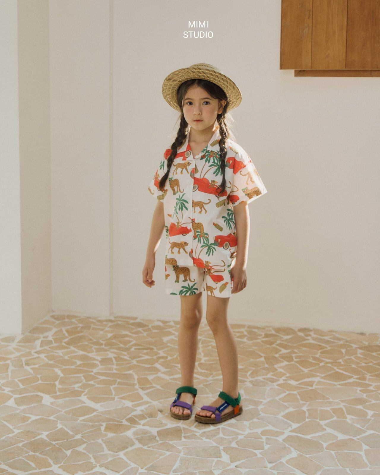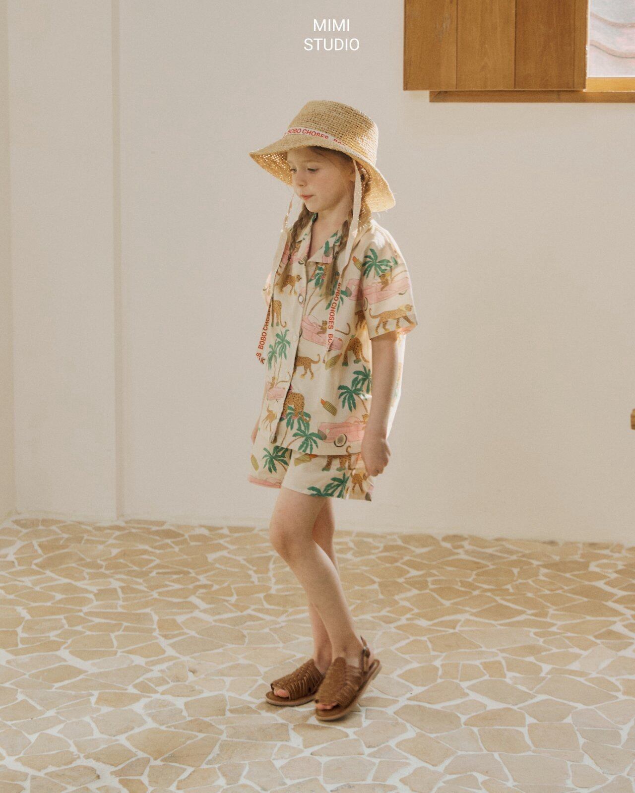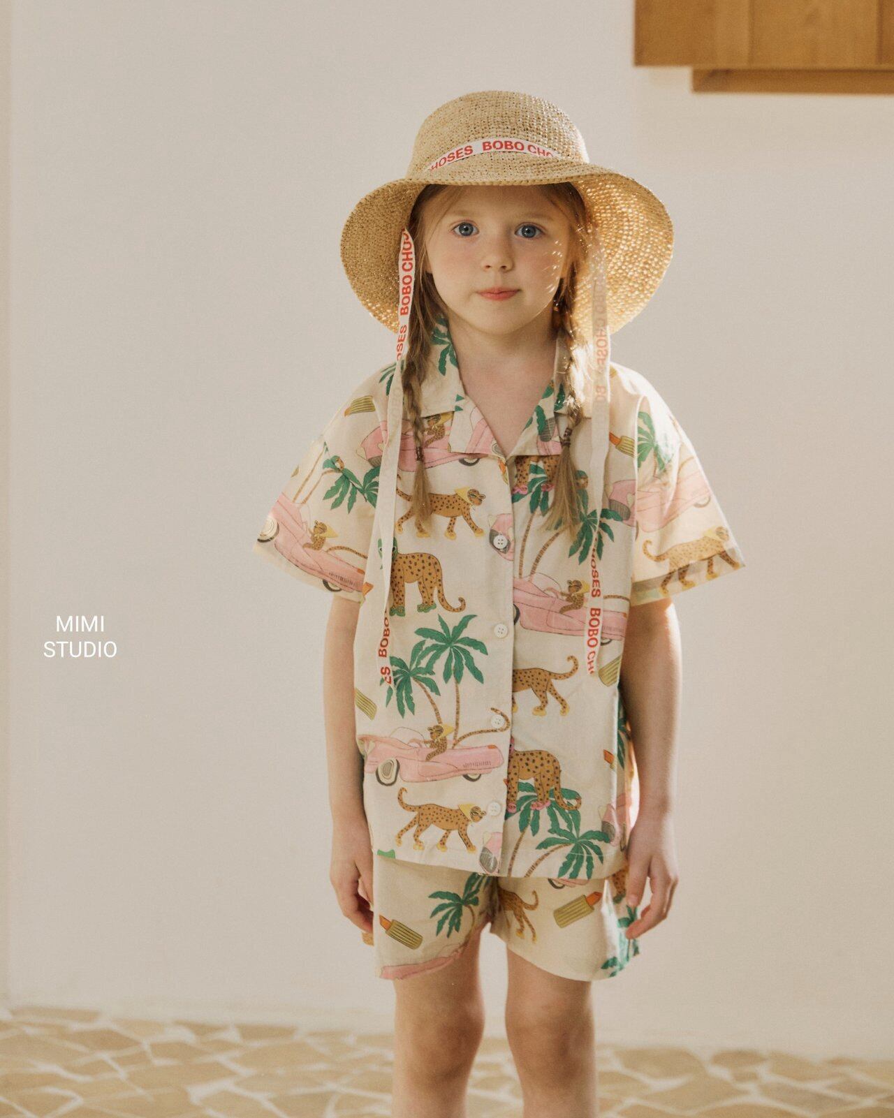 ゆるいチーターのイラストがちりばめられた開襟シャツ