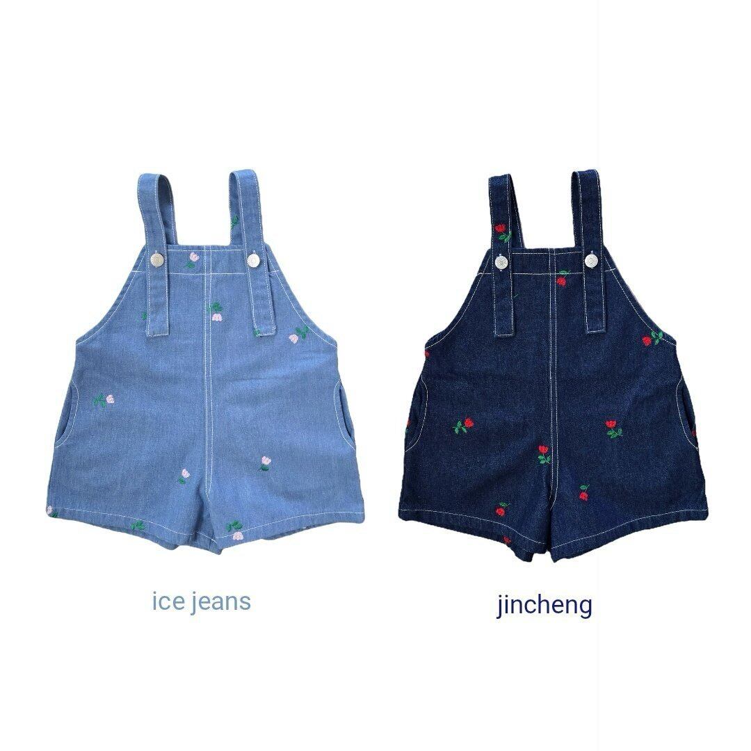 刺繍が散りばめられたショートパンツタイプのオーバーオール