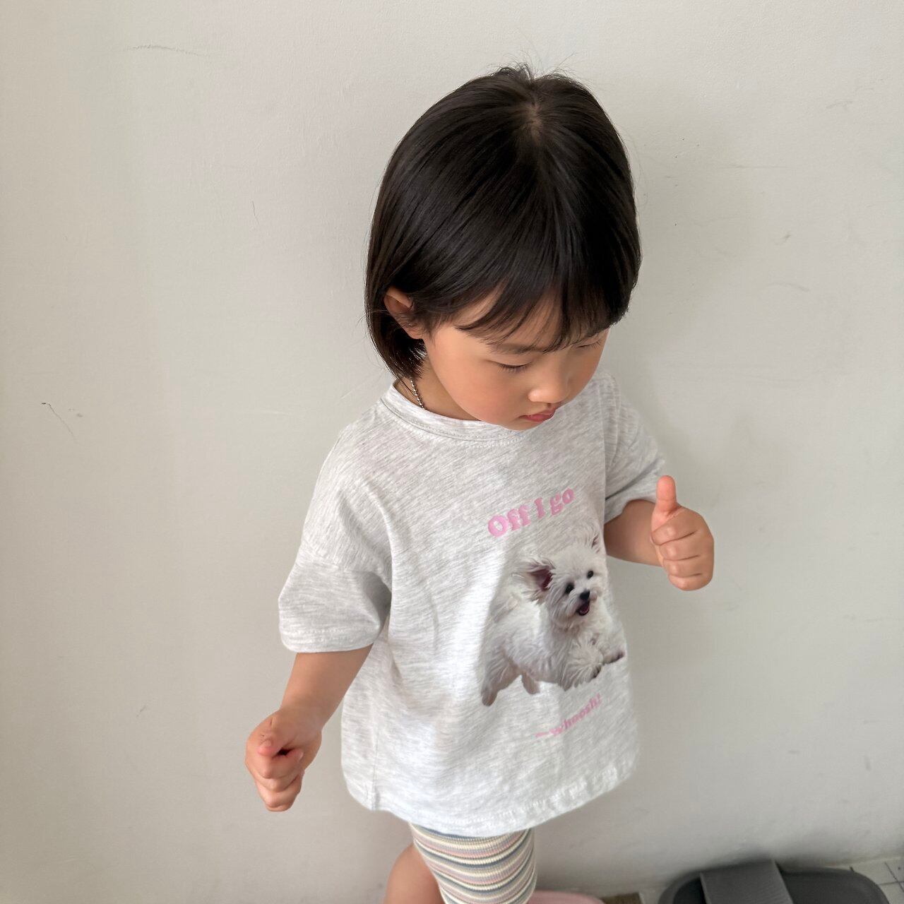 かけ抜けている子犬がポイントのプリントTシャツ